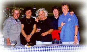 Der Präsident der OePV, Alfred "Bumsti" Stückler, hat bereits seinen Griller in Betrieb. Diesen Job läßt er sich nicht nehmen. Bald bruzelt unser Fleisch, und ein guter Geruch weht durch die Bucht. Zusätzlich zum Freibier gibt's selbstverständlich einen - oder mehrere - von Bumsti's selbstgebrannten "Brenn obi, stink auffi" zur Verdauung. Auch der Präsident des Burgenländischen Landessegelverbandes, Dr. Kurt Wimmer, leistet uns Gesellschaft.