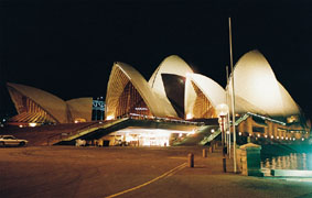 So laßt uns die Reise beginnen. Der Flug von Wien nach London war kein Problem. Den Zwischenaufenthalt in London nutzten wir für einen Stadtbummel und Besichtigung der Sehenswürdigkeiten. Vor der Westminster Abtei winkte uns Prinz Charles zu. Da wir in der Menge standen, wird sein Winken wohl dieser mehr gegolten haben als uns. Wir winkten höflich zurück. Spät abends hob der Jumbo von Heathrow ab. Insgesamt 22 Stunden Flug bis Sydney, 11 Stunden bis Singapur, lagen vor uns. Bilderbuchlandung in Sydney. Der Hintern tat uns vom langen Flug und von den verschiedenen Sitzstellungen weh. Die zwei Tage in Sydney nutzten wir zum Akklimatisieren (das tat uns gut) und zur Besichtigung von City, Zoo und Hafen. Sydney bereitete sich intensiv auf die Olympischen Spiele vor. Die Stadt war eine Baustelle und litt unter dem täglichen Verkehrschaos. Vor dem Abflug nach Alice Springs mußten wir aufgrund zweier im Taxi vergessenen und zurückgebrachten Gepäckstücke (ein Lob dem Fahrer) den Flug auf den nächsten Tag verschieben (zuerst waren alle Flüge ausgebucht, dann klappte es doch), was uns eine zusätzliche ungeplante Nacht in einem Hotel auf dem Airport bescherte (Anruf bei Hertz in Alice Springs: "No Problem, Mate, wir halten die Reservierung des Autos aufrecht").